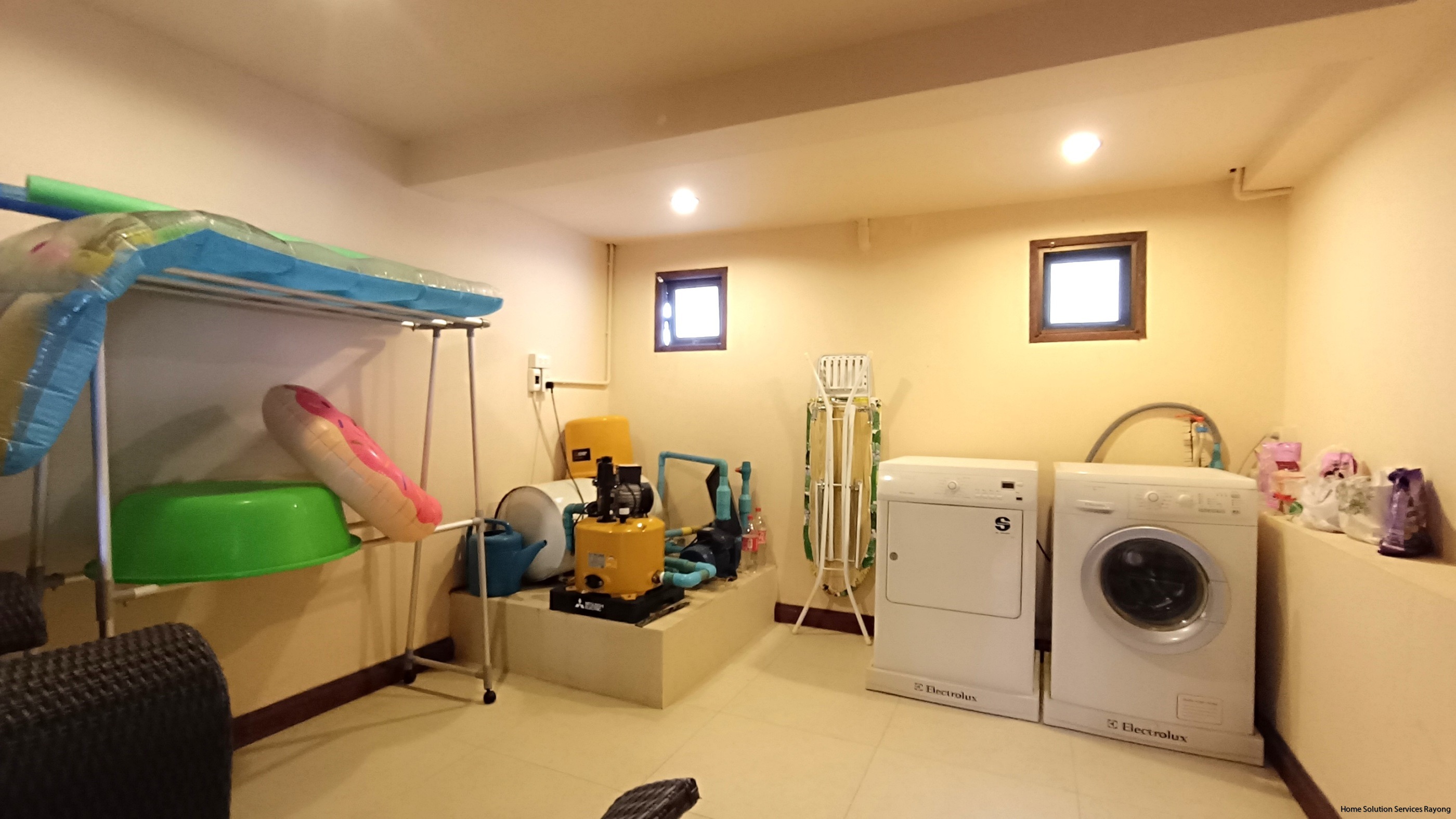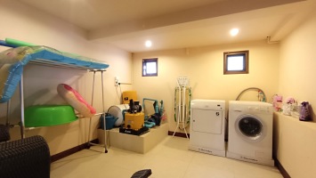 Other spaces and facilities on this floor: Storage/sub-central room - a fully equipped laundry room and machine room - 3-Phase/380 V, earth fault circuit breaker and lightning protection conductor - there is a garage for 1-2 cars - there is a sophisticated surveillance system with 8 cameras.