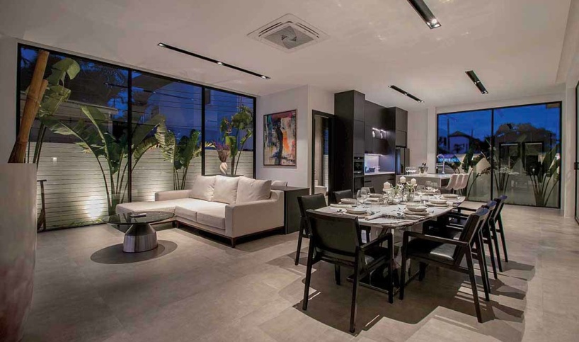 Among the available options is this ready to move in modern 3-bedroom, 3-bathroom house, thoughtfully designed with a Western-style kitchen, an open-plan living and dining area featuring extra-high ceilings, and a floor-to-ceiling glass wall that fills the space with natural light.